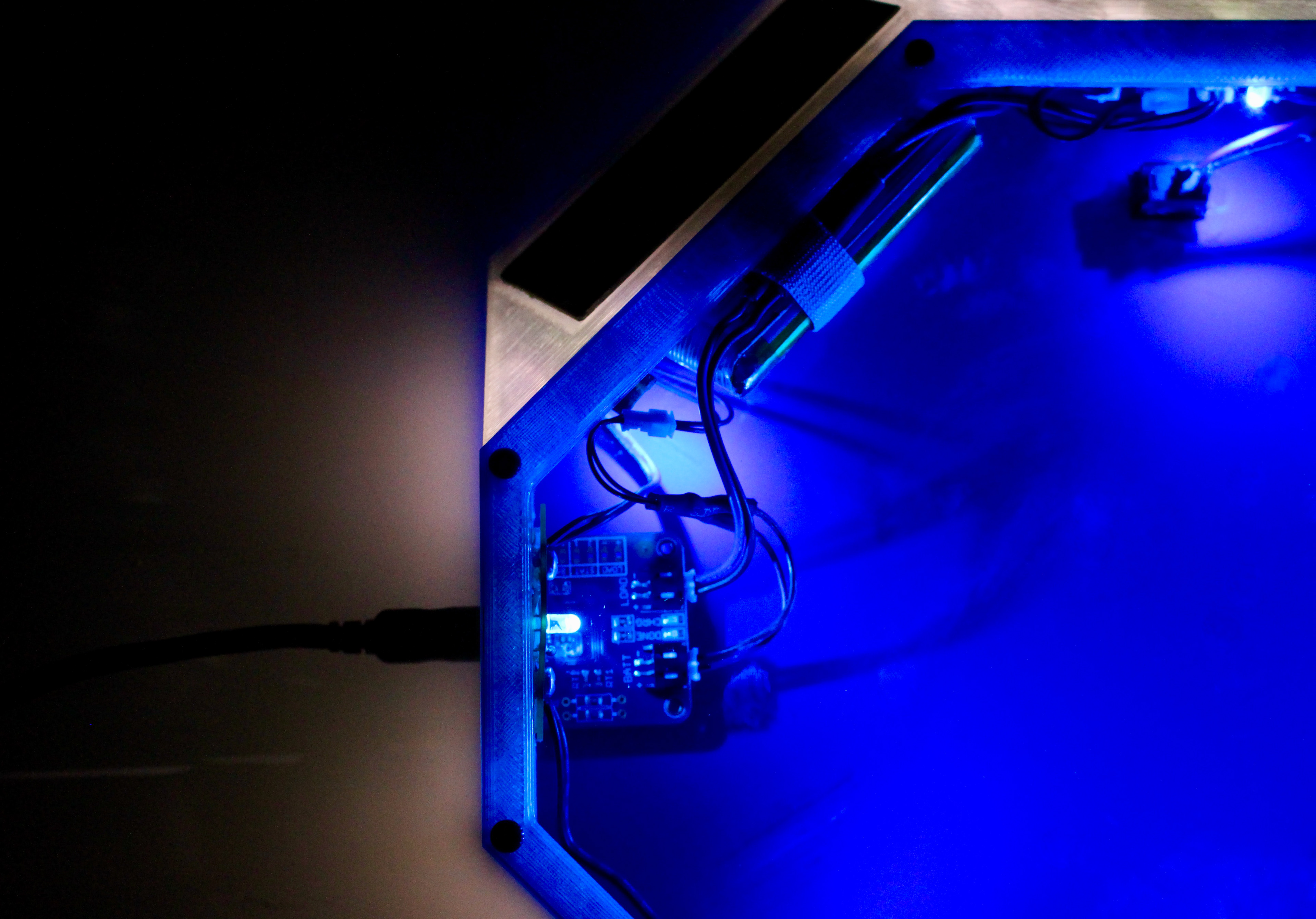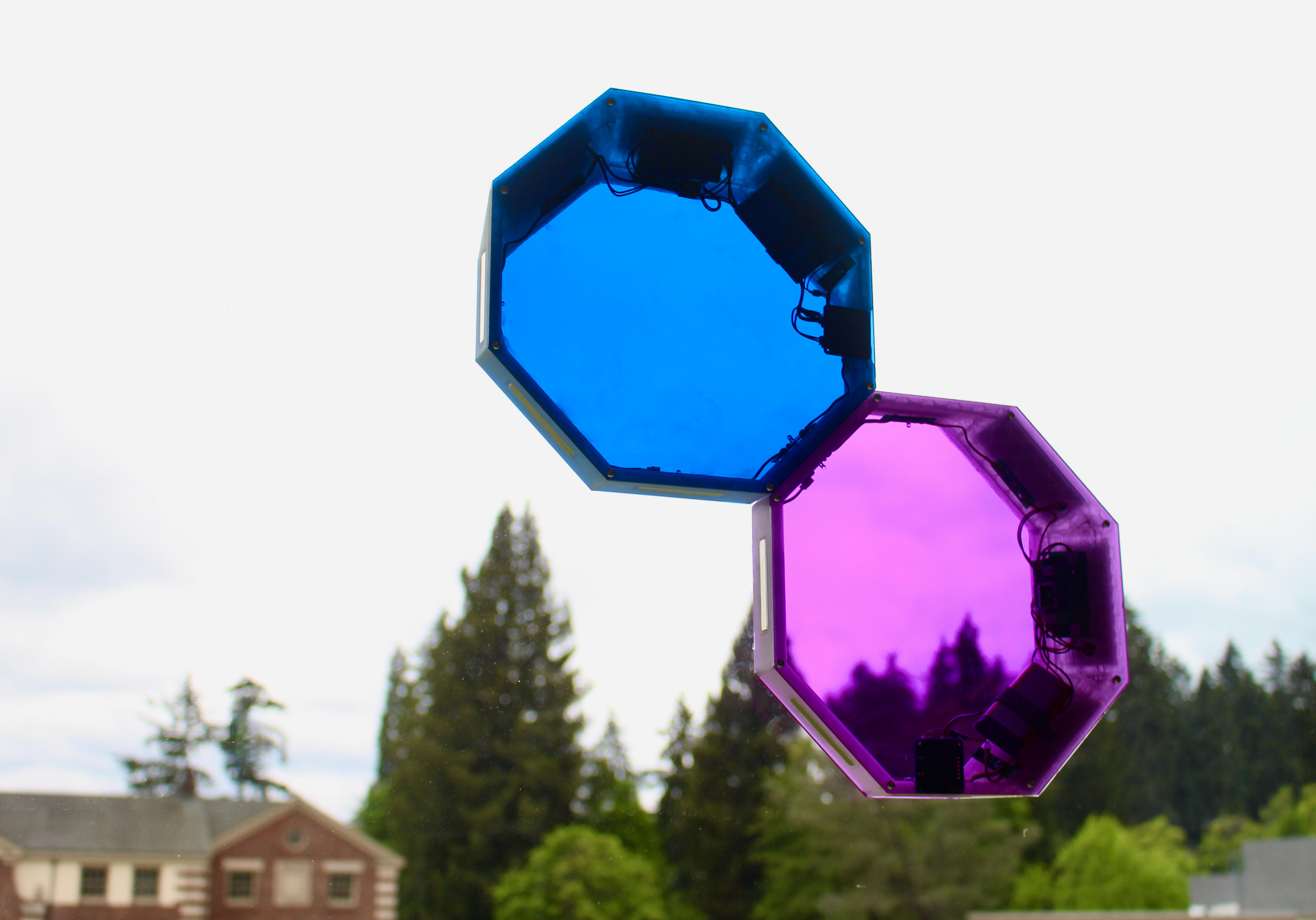 Solaris is a modular solar powered lighting tile designed to stick to windows. The tile harvests energy from the sun and stores it in its integrated rechargeable battery. As the evening darkens, ambient light sensors in Solaris' angled solar cells switch on the LED lights within and the tiles will begin to shine like stars. The idea behind Solaris is to give the user the ability to create a mosaic on their window using several tiles connected together by magnets. This prototype uses recycled solar cells from other solar powered devices as well as off-cuts from acrylic plexiglass projects. The battery is rechargeable and can even be charged using an integrated battery charger to power the lights if sunlight is ever insufficient. A switch on the front face can turn the battery and lights on and off. The tiles are also designed to be easily taken apart, meaning components within can be replaced if needed. My design, Solaris, received $2,000 in funding from the UO Product Design Department as part of the 2022 AASFP Product Design Awards.